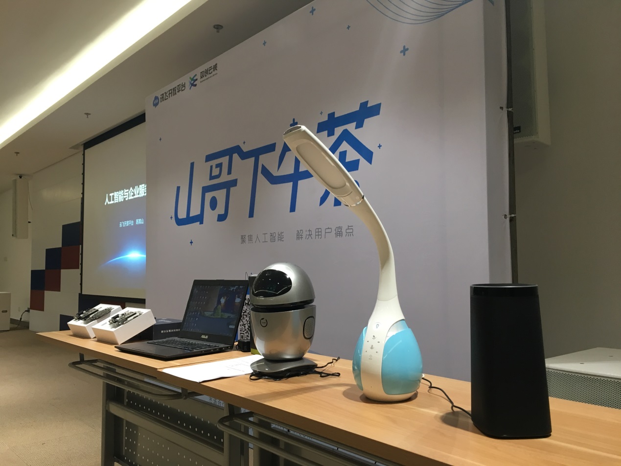 與此同時,在雙創(chuàng)云城六樓培訓室內(nèi)也是群賢畢至,少長咸集,一場以人工智能技術體驗與交流為主要內(nèi)容的科大訊飛品牌活動—“山哥下午茶”如期而至,常州本地人工智能產(chǎn)業(yè)相關創(chuàng)業(yè)者、開發(fā)者們與科大訊飛的核心骨干成員匯聚一堂,通過科大訊飛的產(chǎn)品及硬件展示、核心團隊的技術分享及自由的提問交流環(huán)節(jié),一站式解答創(chuàng)業(yè)團隊技術層面的各種疑難問題,共同搭建人工智能技術交流的平臺。